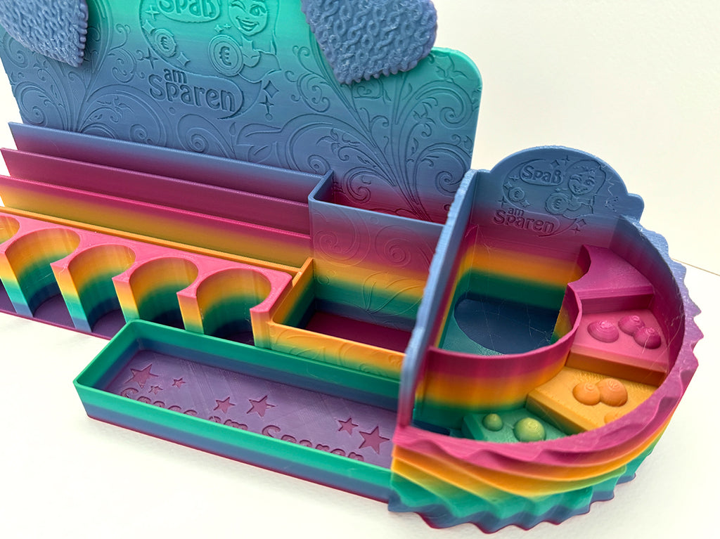Ihr erhaltet ausschließlich den Geld-Sortierer + Würfeltreppe + 4 Deco-Stecker - alle weiteren abgebildeten Elemente dienen der Demonstration & Dekoration.